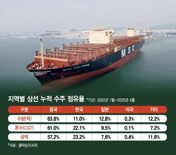 지역별 상선 누적 수주 점유율/그래픽=김지영 |