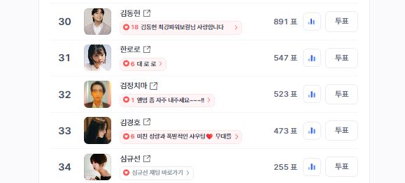 그의 깊은 감성은 이번 주 팬들의 선택에도 반영됐다. 4월 3주차 디시트렌드 '이 가수의 발라드는 내 심장을 쥐고 흔들어!' 주간 투표에서 18일 오후 3시 17분 기준 32위(523표)를 기록하며, 여전히 인디 음악계의 꾸준한 존재감을 입증했다. 무대 위에서는 조용히, 하지만 리스너들의 일상 속에서는 강렬하게 존재하는 검정치마의 음악은 앞으로도 긴 여운을 남길 것이다.