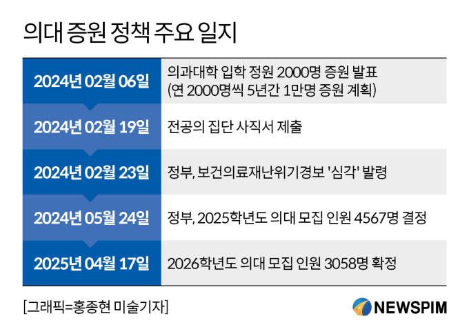 18일 정부에 따르면 교육부와 복지부는 지난 17일 2026학년도 의대 모집 규모를 증원 전인 3058명으로 확정했다.