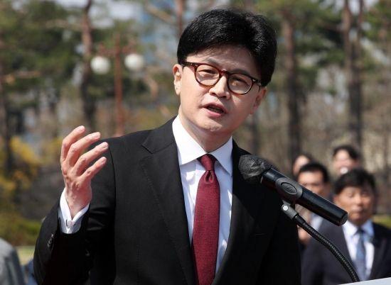 한동훈 국민의힘 전 대표가 지난 10일 국회 분수대 앞에서 대선 출마 선언을 하고 있다. 김현민 기자