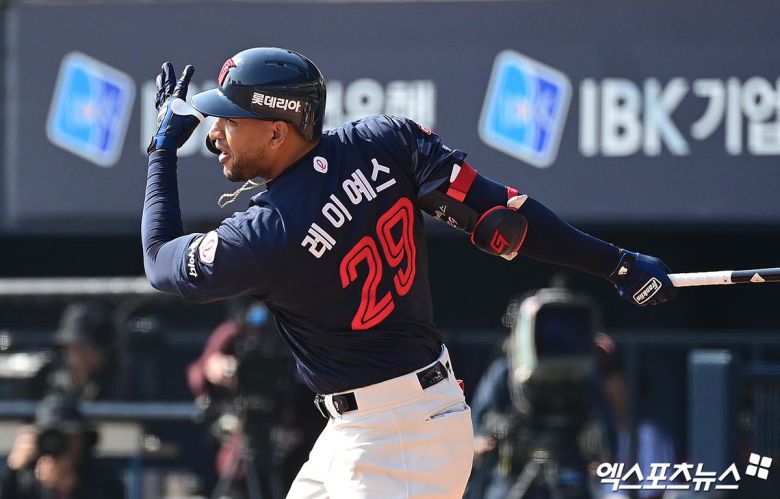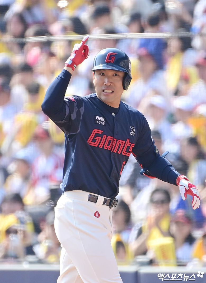 7회초 고승민의 좌익수 뜬공, 전준우의 좌전 안타로 1사 1루. 레이예스가 병살타로 고개를 떨궜다.