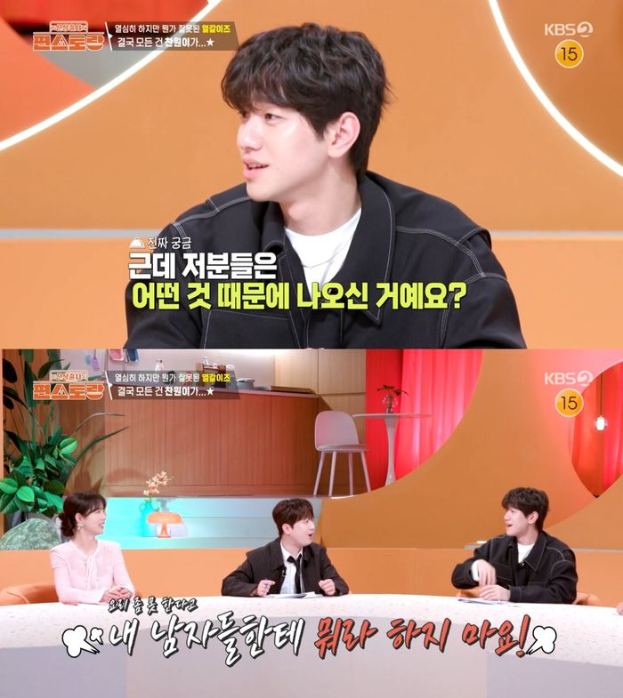 남윤수는 이찬원에게 “황윤성과 김중연은 어떤 것 때문에 나온 거냐”고 물었다. 이찬원은 “내 남자들한테 뭐라 하지 마라. 본인 친구들은 185cm씩 된다고. 내 친구들도 175cm씩은 된다”고 버럭해 웃음을 자아냈다.