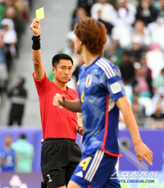 3일(현지시간) 카타르 알라이얀 에듀케이션 시티 스타디움에서 열린 2023 아시아축구연맹(AFC) 카타르 아시안컵 8강전 이란과 일본의 경기. 중국 마닝 주심이 일본 이타쿠라에게 경고를 주고 있다. 알라이얀(카타르)=박재만 기자 pjm@sportschosun.com/2024.02.03/