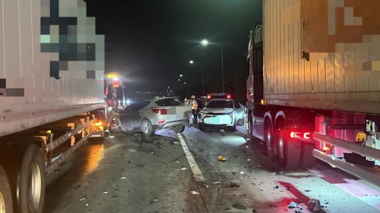 경찰은 승용차가 앞서가던 트럭을 들이받은 뒤 따라오던 차 두 대가 잇따라 부딪혔고, 날아온 파편에 다른 차 두 대가 피해를 본 거로 추정하고 있습니다.