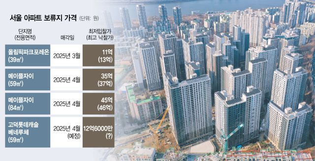토허구역으로 묶인 강남 3구에서는 올해 메이플자이를 비롯해 송파구 ‘잠실래미안아이파크’, 강남구 ‘청담르엘’ 등이 입주를 앞두고 있다. 통상 조합은 공사비 잔금을 마련하기 위해 입주 해에 보류지를 매각한다. 서초구 ‘래미안원펜타스’ 조합도 보류지 재매각을 검토 중이다. 이 아파트 조합은 지난해 9월 보류지 3가구의 매각을 시도했지만 응찰자가 없어 유찰된 바 있다. 전용 59㎡ 기준 최저 입찰가가 35억 원으로 시세와 큰 차이가 없었던 것이 유찰 배경으로 꼽힌다.