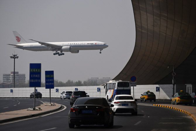 보잉777-80이 10일(현지시간) 베이징 국제공항에 도착하고 있다. (사진= AFP)