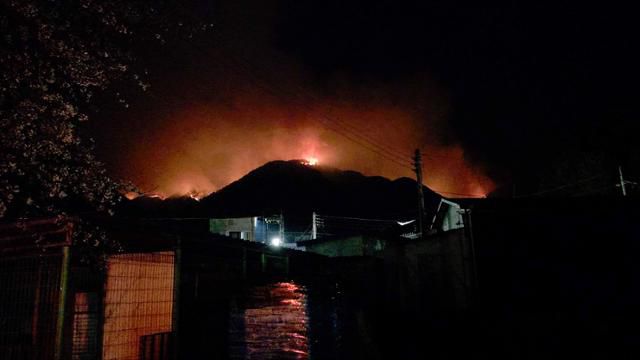 경남 산청군에서 발생한 산불 아흐레째인 지난달 29일 산림 당국이 마지막 남은 화선인 지리산권역 주불 진화를 목표로 진화작업을 이어가고 있다. 사진은 그날 오전 4시쯤 산청군 일대의 모습. 연합뉴스