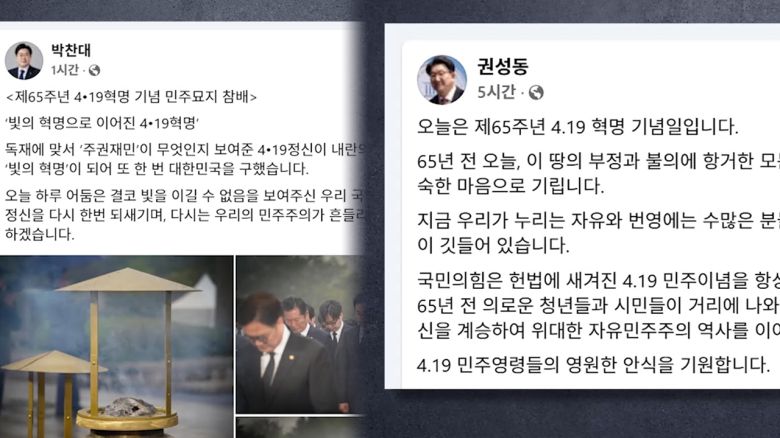 국민의힘 권성동 원내대표도 SNS에 "국민의힘은 헌법에 새겨진 4·19 민주이념을 항상 되새기고 성찰하겠다"며 "65년 전 의로운 청년들과 시민들이 거리에 나와 피흘려 이룩한 4·19 혁명정신을 계승해 위대한 자유민주주의 역사를 이어가겠다"고 강조했습니다.