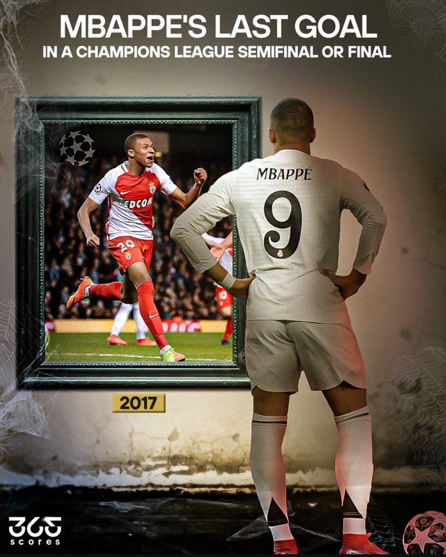 이어 "음바페는 2017년 모나코 소속으로 준결승전에서 유벤투스를 상대로 득점했다. 이후 현재까지 준결승과 결승에서 득점을 해내지 못했다"고 덧붙였다.