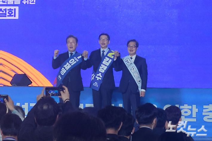 이재명.김경수.김동연 후보는 이날 충북 청주체육관에서 열린 민주당 대선 후보자 선출을 위한 충청권 합동연설회에서 저마다 인연을 강조하며 미래 청사진을 제시했다.