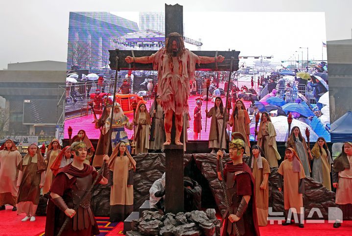 [서울=뉴시스] 김금보 기자 = 19일 서울 광화문광장 일대에서 한국교회총연합 주최로 ‘부활절 퍼레이드’가 열렸다.