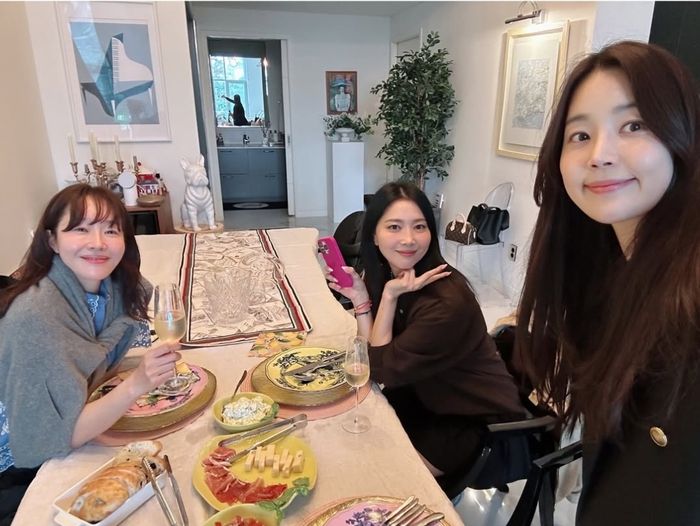 테이블에는 다양한 음식과 와인이 준비돼 있어, 모처럼의 만남을 더욱 특별하게 만들어주었다. 편안한 차림에 자연스러운 미소까지, 오랜만에 모인 세 배우는 일상 속에서 소중한 힐링의 순간을 즐겼다.