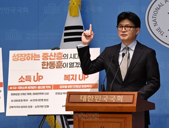 국민의힘 대선 경선 주자인 한동훈 전 대표가 15일 서울 여의도 국회 소통관에서 정책비전을 발표하고 있다. 2025.4.15. 안주영 전문기자