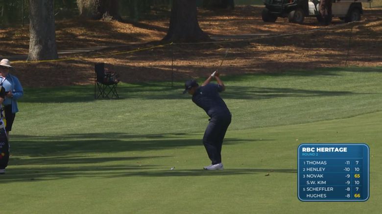 김시우가 PGA투어 REC 헤리티지에서 단숨에 우승 경쟁에 합류했습니다.