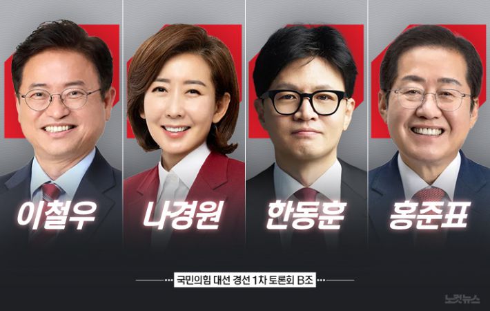 이날 B조 토론회에는 나경원·이철우·한동훈·홍준표 후보가 '사회 통합'을 주제로 맞붙는다.