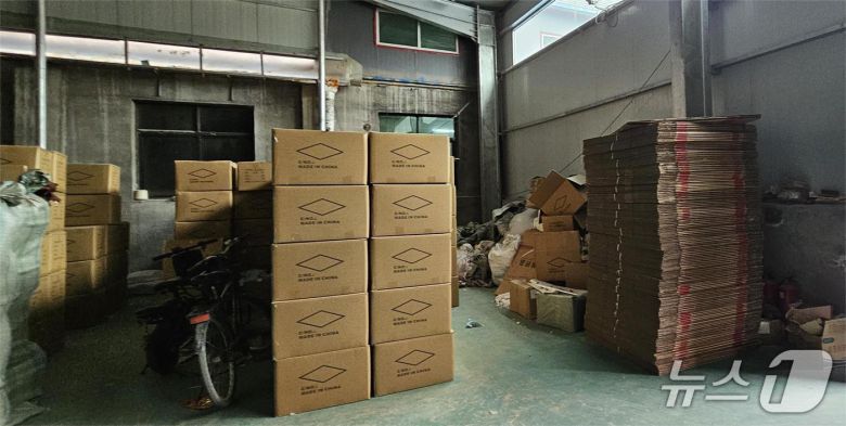 (허베이성 바오딩=뉴스1) 정은지 특파원 = "원래는 비어 있어야 하는 창곤데, 제품 출하를 중단하는 바람에 여기에 (나가지 못한) 박스가 가득 찼어요. 당분간은 마진을 포기하면서라도 버텨보려 합니다."