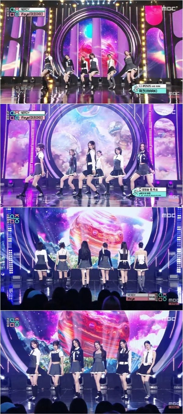 ifeye(이프아이)는 ‘NERDY’의 역동적인 안무와 다채로운 표정 연기를 통해 그룹만의 독특한 매력을 뽐내며 더욱 성장한 모습을 보여줬다. 데뷔 이후 단숨에 실력파 신인으로 자리매김한 이들은 ‘쇼! 음악중심’에서도 자신의 가능성을 확실히 입증했다.