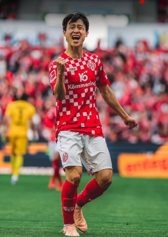 독일 분데스리가 마인츠에서 활약 중인 이재성이 시즌 7호골을 터뜨린 뒤 기뻐하고 있다. 사진=마인츠 구단 SNS |