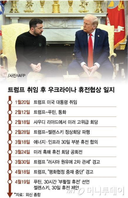트럼프 취임 후 우크라이나 휴전협상 일지/그래픽=김다나 |