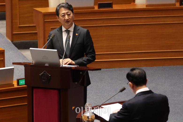 안덕근 산업통상자원부 장관이 15일 서울 여의도 국회 본회의에서 열린 경제 분야 대정부질문에서 의원 질의에 답하고 있다. 고이란 기자 photoeran@