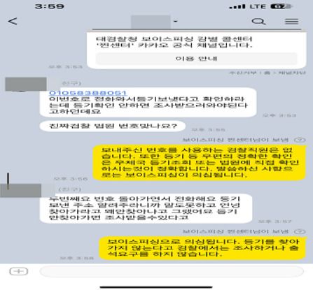 [서울=뉴스핌] 김현구 기자 = 검찰이 보이스피싱 의심 전화의 진위를 확인해 주는 '보이스피싱 서류, 진짜인지 알려줘 콜센터', 이른바 '찐센터' 카카오톡 채널을 개설했다.
