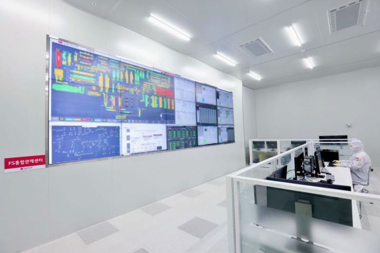 경북 구미 LG이노텍 ‘드림 팩토리’ 내 라인 모니터링 시스템(LMS)이 갖춰진 통합관제실. 이곳에서 FC-BGA 생산 현황을 한눈에 파악할 수 있다. LG이노텍 제공