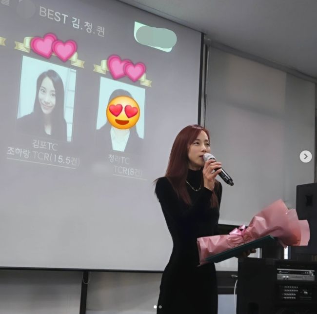 조민아는 20일 자신의 SNS에 “잘하는 사람이 오래 하는 게 아니라 오래 하는 사람이 잘한다. 꾸준하게, 행복하게. 앞으로도 오래 하자. #전국 1위”라는 글과 함께 근황을 공개했다. 보험설계사 일을 시작한 후 회사에서 전국 1위 ‘보험왕’이 돼 수상하는 모습이 담긴 사진도 함께 게재했다.