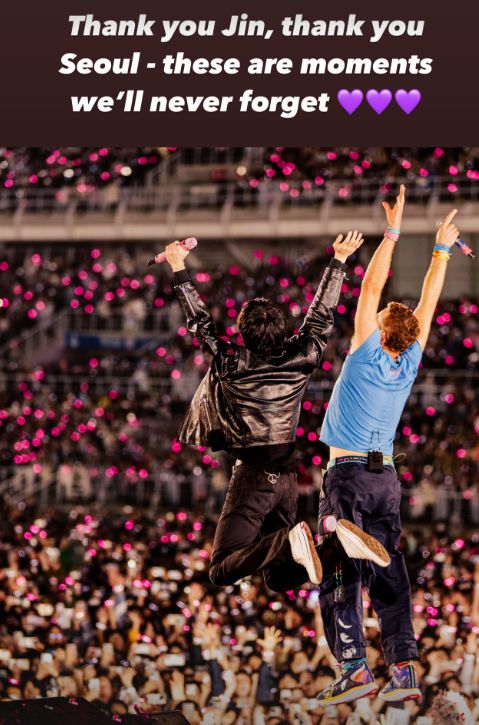 공연 이후 진은 자신의 SNS에 "해피"라는 글과 함께 공연 사진을 게재했다. 멤버 RM은 진과 크리스 마틴의 맞절 사진에 "뭉클하군요"라는 댓글을 달기도 했다.