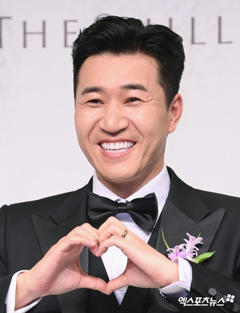 이날 결혼식 기자회견에 참석한 가수 겸 방송인 김종민이 포토타임을 갖고 있다.