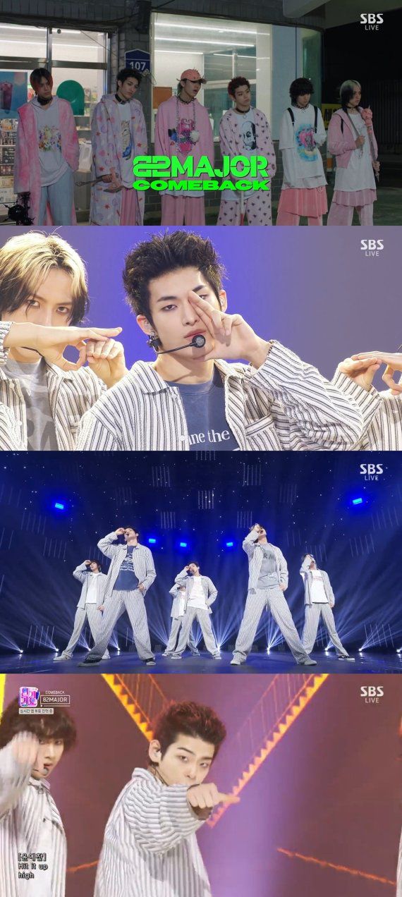 82메이저는 20일 오후 방송된 SBS '인기가요'에 출연해 미니 3집 'SILENCE SYNDROME' 타이틀곡 '뭘 봐(TAKEOVER)' 컴백 무대를 꾸몄다.