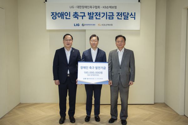 지난 18일 서울 송파구 LIG 본사에서 개최된 전달식에는 최용준 ㈜LIG 대표, 김기환 대한장애인축구협회 회장을 비롯해 오병주 KB손해보험 전무 등이 참석했다. LIG는 2007년부터 LIG넥스원, LIG시스템, 휴세코, 이노와이어리스 등 주요 계열사들과 함께 대한장애인축구협회를 후원하고 있다.