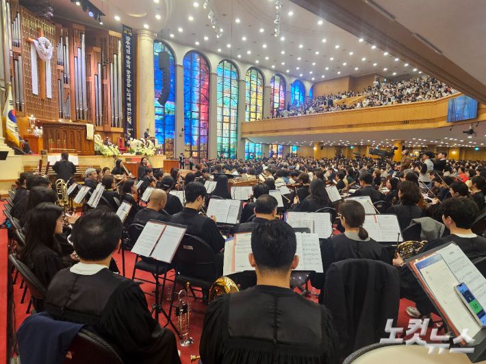 한국기독교 선교 140주년을 기념해 열린 2025 한국교회 부활절 연합예배는 '부활! 회복! 창조!' 를 주제로 서울 강남구 논현로 광림교회 예배당에서 진행됐다.