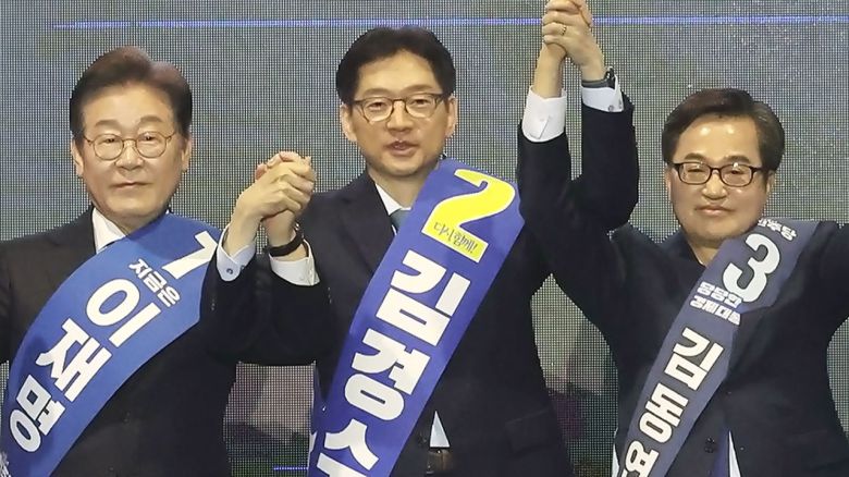 조기 대선까지 44일 남은 가운데 더불어민주당은 영남권에서 순회 경선을 벌였는데, 이재명 후보는 90%를 넘는 압도적인 득표율로 1위를 기록했습니다. 경남지사 출신인 김경수 후보가 2위, 김동연 후보가 그 뒤를 이었습니다.