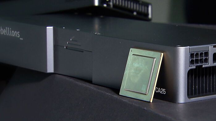 KOREA라고 적힌 은색 칩, 국내 AI 스타트업이 설계한 AI 반도체입니다.