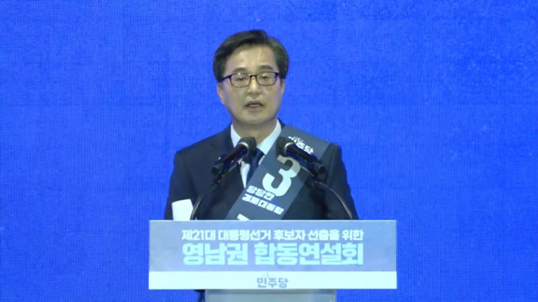 더불어민주당 김동연 대선 경선 후보는 영남권 합동 연설회에서, 자신이 트럼프 관세 전쟁에 맞설 적임자라며 경제 전문가 이미지 부각에 힘을 썼습니다.
