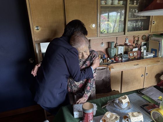대문이 열리고 “향자에요” 소리가 들리자 백발의 하마다 요시에(濱田芳枝·98) 여사가 지팡이를 떨궜다. 양향자(58) 전 국회의원을 부둥켜안은 하마다 여사는 연신 눈물을 훔쳤다. 20일 일본 도쿄(東京)도 히가시야마토(東大和) 자택을 찾은 양 후보 역시 굵은 눈물을 떨궜다.