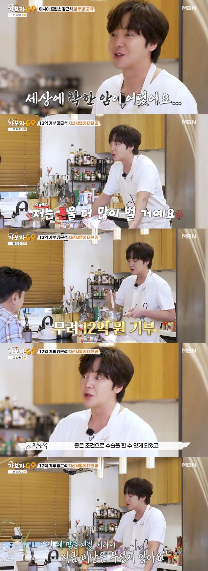 장근석은 자선 사업에 관심을 가지게 된 계기에 대해 "모교인 한양대에 12억 원 정도를 기부한 적이 있다. 그때는 '후배들 공부를 더 잘할 수 있게 하자'는 거였는데 내가 모교가 한양대니까 모교 병원에 갔다. 근데 기부한 명단을 보고 좋은 조건으로 수술을 할 수 있게 됐다"며 "결국에는 내가 베풀고자 했던 게 나한테 돌아오는 걸 인생에서 너무 크게 느꼈다. 도움을 준 만큼 결국 나한테 돌아온다는 걸 너무 크게 깨달아서 더 진지하게 생각하게 됐다"고 말했다.