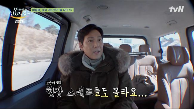 사남매는 대관령으로 출근길에 올랐고, 오늘 깜짝 게스트는 이정재였다. 등장에 앞서 이정재는 “군대 가는 것 같은 느낌이네”라는 말을 하기도. 차에서 내리는 이정재는 “이렇게? (시작하는거야?)”라며 당황하기도. 이정재는 “프로그램은 많이 봤으니까 일은 무조건 시킬 텐데 강원도라고 하니까”라며 걱정을 했다.