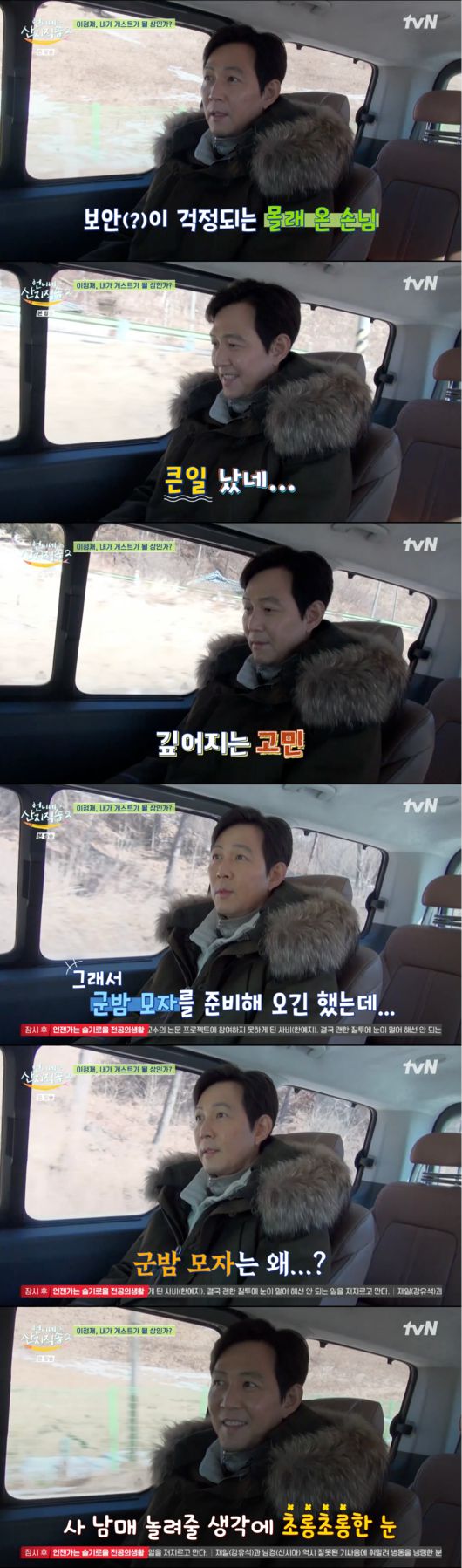 어떻게 등장할지 고민이라는 이정재는 군밤 모자를 가져왔다고 밝혔다. 이정재는 “어떻게 놀라게 해야 하나?”라며 장난스러운 표정으로 눈을 빛냈다. 작업장에 들어선 이정재는 군밤장수 모자를 쓰고 미소를 지었다.