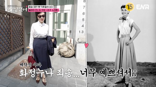 그때 제작진은 다시 한번 최화정의 패션을 언급하며 “오드리 헵번 같다”라고 말했다. 놀란 최화정은 “그런 거 자막이라도 나가면 저 죽습니다. 저 죽어요”라고 말해 웃음을 자아냈다.