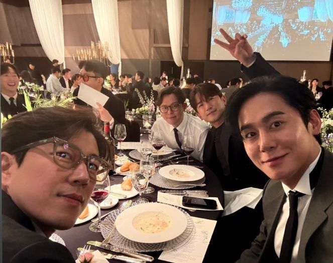 지난 20일 김종민의 결혼식에 하객으로 참석한 (왼쪽 위부터) H.O.T 장우혁, NRG 천명훈, H.O.T 토니, 신화 이민우, 클릭비 김상혁, 젝스키스 장수원. 사진 | 김상혁 SNS |