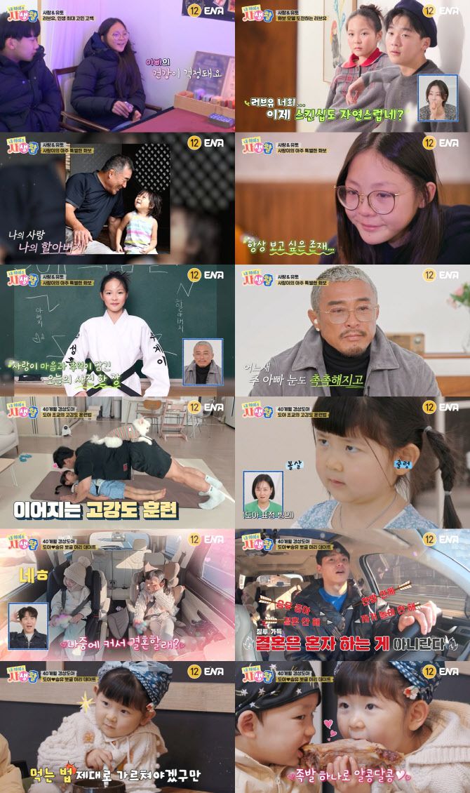 4월 20일 방송된 ENA 일요예능 ‘내 아이의 사생활’(이하 ‘내생활’) 17회에서는 사랑과 유토 ‘러브유’ 커플의 화보 촬영과 한국 여행 둘째 날 이야기, 그리고 ‘씨름계 다비드’ 박정우의 마음을 질투로 뒤집어놓은 딸 ‘경상도 베이비’ 도아의 설레고도 구수한 사생활이 그려졌다.