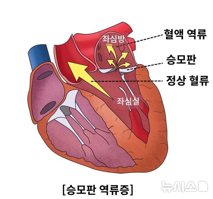 [서울=뉴시스]퇴행성 승모판 역류증은 노화로 인해 좌심방에서 좌심실로 가는 입구에 위치한 승모판이 완전히 닫히지 않아 좌심실이 수축할 때 혈액이 좌심방으로 역류하는 질환이다. (이미지= 서울아산병원 제공) 2025.04.21. photo@newsis.com. |
