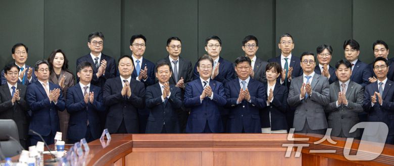 (서울=뉴스1) 이재명 기자 = 이재명 더불어민주당 경선 후보와 서유석 금융투자협회장을 비롯한 참석자들이 21일 오전 서울 여의도 금융투자협회에서 열린 자본시장 활성화를 위한 정책간담회에서 기념촬영을 하고 있다. 2025.4.21/뉴스12expulsion@news1.krCopyright ⓒ 뉴스1. All rights reserved. 무단 전재 및 재배포, AI학습 이용 금지.이 기사의 카테고리는 언론사의 분류를 따릅니다.0공유하기