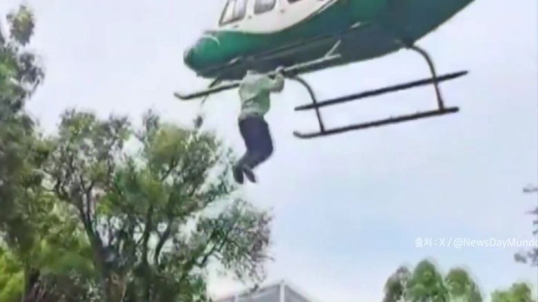 [나우쇼츠] 이륙하는 헬기에 매달린 남성...이유는 "돈 달라"