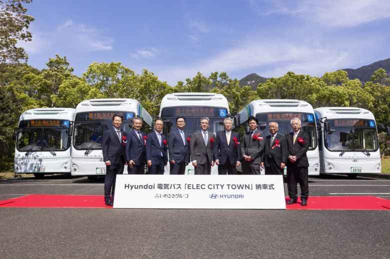 현대차는 21일 야쿠시마 이와사키호텔에서 이와사키그룹과 ‘일렉시티 타운 전달식’을 개최하고 이와사키그룹이 운영하는 타네가시마·야쿠시마 교통 주식회사에 무공해 전기 버스인 일렉시티 타운 5대를 공급했다.
