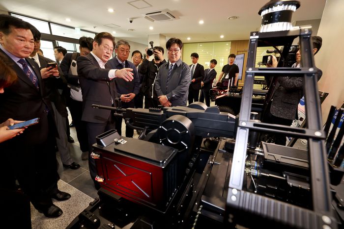 더불어민주당 대선후보 경선 주자인 이재명 전 대표가  지난 17일 대전광역시 유성구 국방과학연구소(ADD)에서 AI 기반 무인체계 연구개발 현장을 둘러보고 있다. [국회사진기자단]