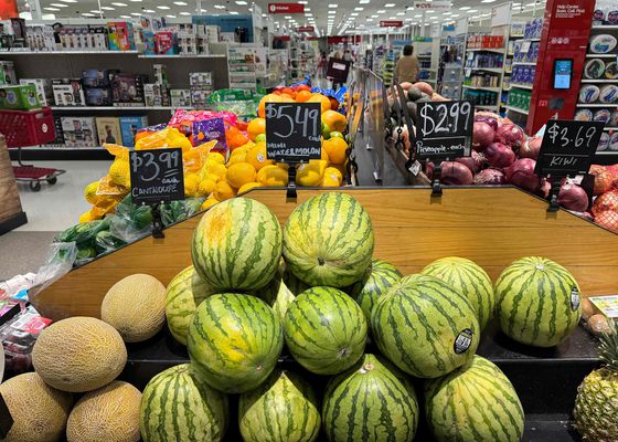 미국 대형 유통업체 ‘타깃’ 매장에 진열된 멕시코산 수박. 브라이언 코넬 타깃 CEO는 도널드 트럼프 대통령이 멕시코에 부과한 관세로 인해 농산물 가격이 인상될 수 있다고 말했다. AFP=연합뉴스 |