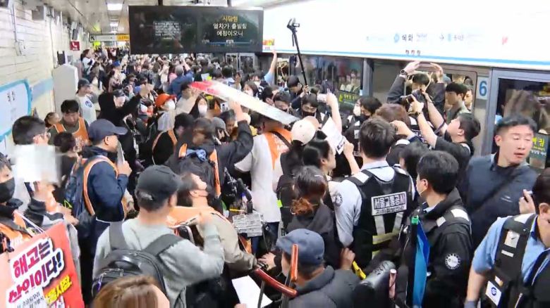 <현장음> "지하철을 태워주십시오. 지하철을 태워주십시오."