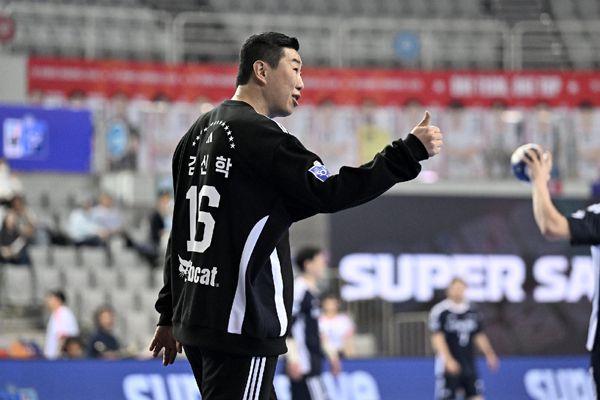 하지만 전반 막판 SK호크스가 연속 가로채기로 12-8까지 따라붙은 데 이어, 지형진 골키퍼의 선방이 이어지며 전반 종료 직전 13-11까지 추격했다.